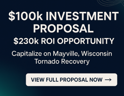 After a powerful tornado swept through Mayville, Wisconsin, the town is rebuilding fast. We're inviting select investors to fund high-demand reconstruction projects with a projected ROI of $230k on a $100k investment in under 24 months.